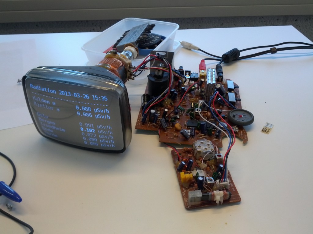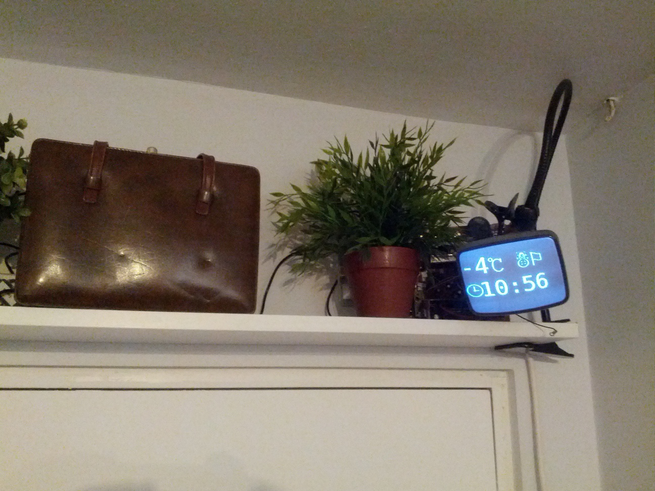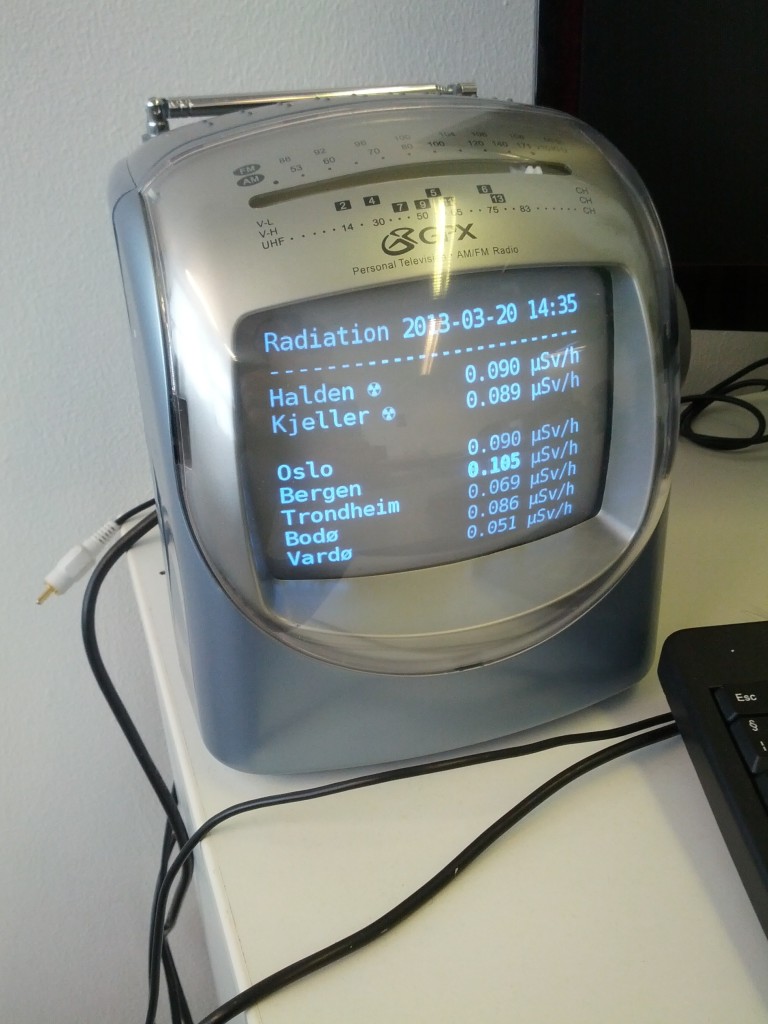 In the movie Brazil you can see small, mostly black/white, stripped down, CRT monitors. I’ve also seen a store having CRTs in transparent cases. Somehow I think this is a cool retro look, so I built my own. Primarily to display weather forcast by my door.