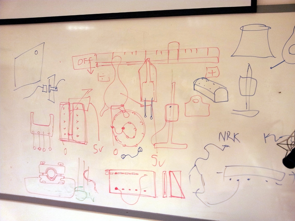 So we hit the whiteboard. Some of the designs from our brainstorming: