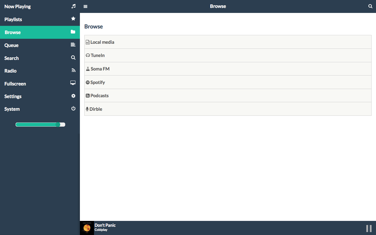 The latter one is a brilliant use of the rPi. In short it includes out of the box support for Spotify, Google Music, Last.fm, internet radio, SoundCloud, local files, files from network shares. Controlled by a webUI or any existing MPD app.